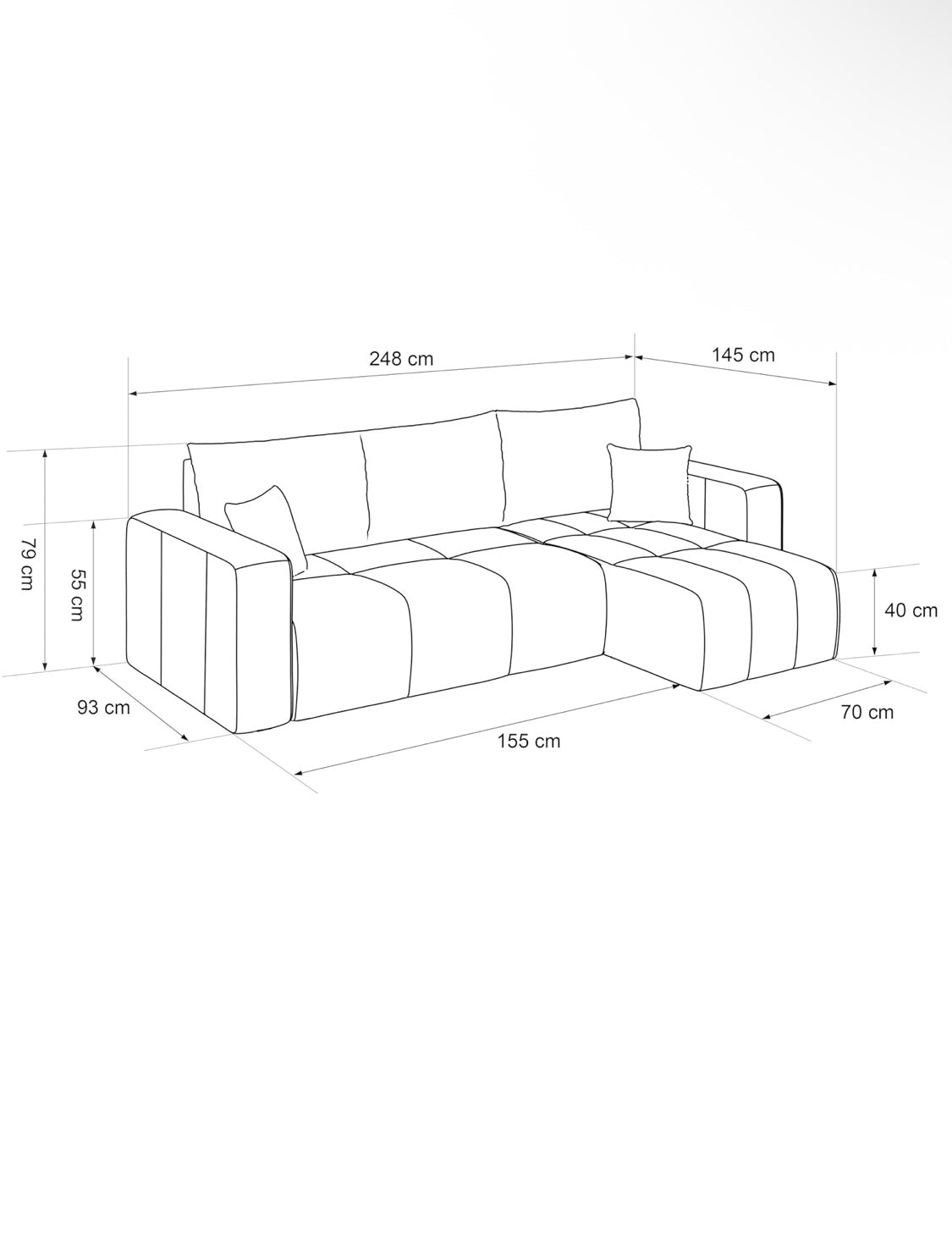 - 💡 Le canapé trois places d'angle surpasse le canapé 3 places standard. Sa forme en L optimise l’espace, idéale pour les grands salons. Ce canapé convertible couchage quotidien est parfait pour un usage quotidien grâce à son confort remarquable, offrant une solution de couchage supplémentaire sans sacrifier le style du salon