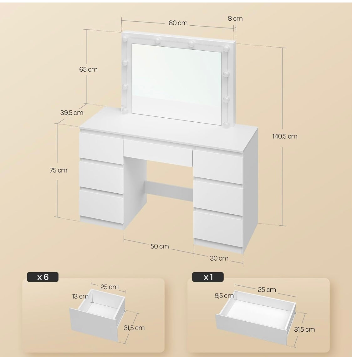 - GRAND ESPACE DE RANGEMENT : Les 7 tiroirs avec glissières métalliques vous offrent assez d'espace pour ranger les produits de soin, les cosmétiques et les bijoux par catégorie et en ordre. Le plateau spacieux vous donne un grand espace de maquillage