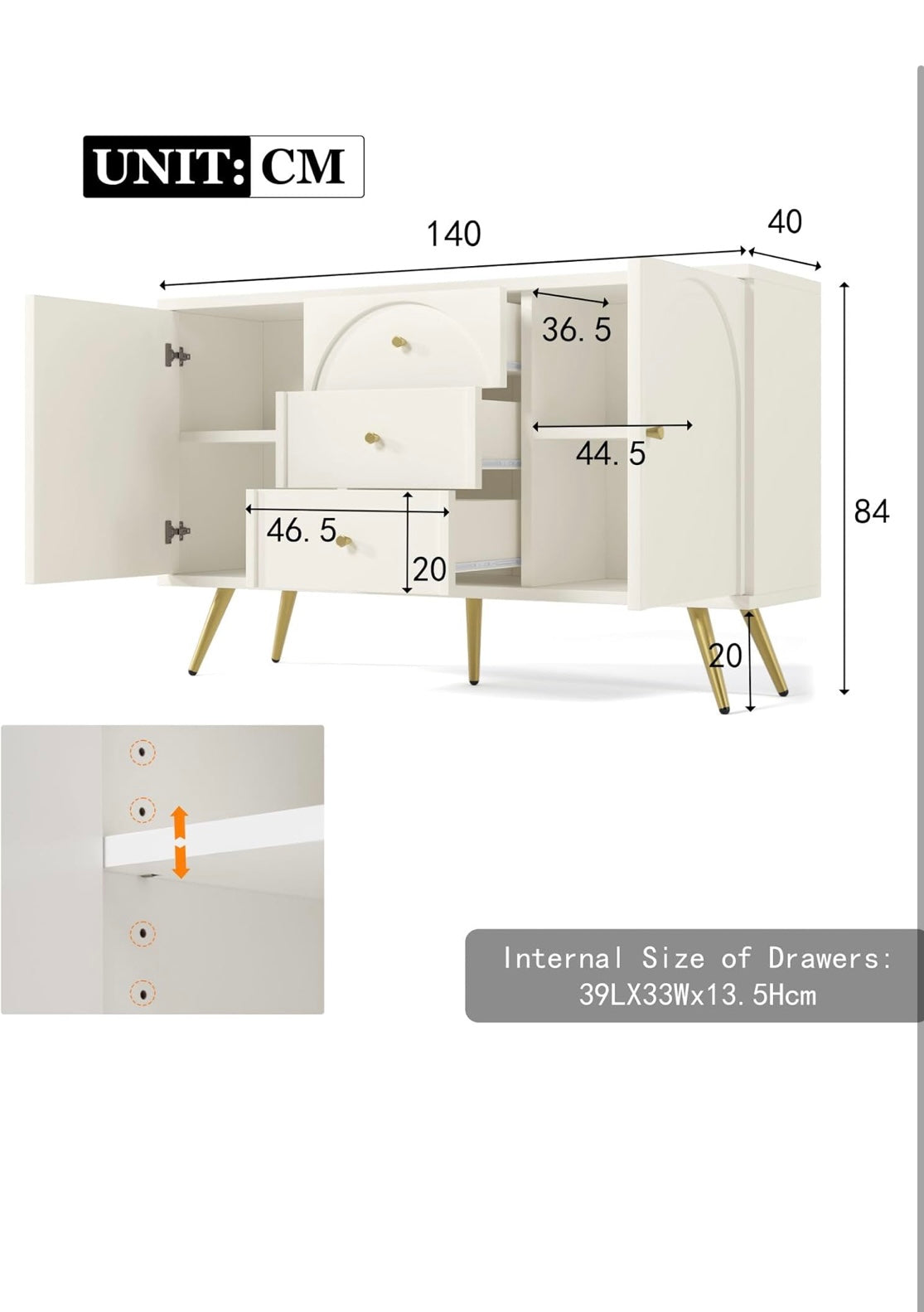 - Système de rangement multifonction : le centre de l'armoire est équipé de 3 tiroirs profonds et spacieux, de portes battantes flexibles des deux côtés et d'une étagère librement réglable. Les étagères peuvent être réglées par incréments de 3 cm et sont réglables en hauteur sur 5 niveaux. Ainsi, vous pouvez parfaitement diviser la literie, les bijoux et autres choses.