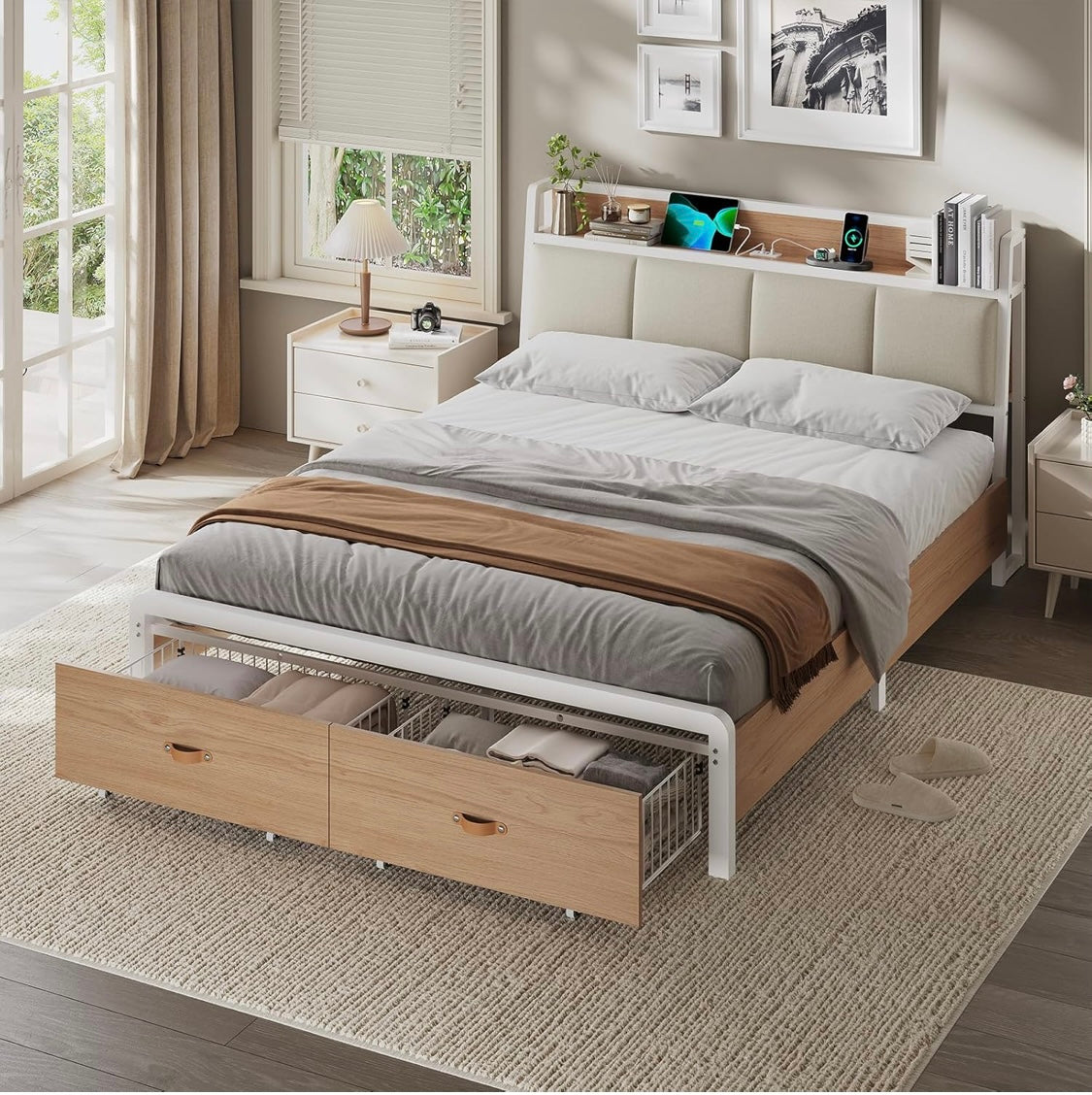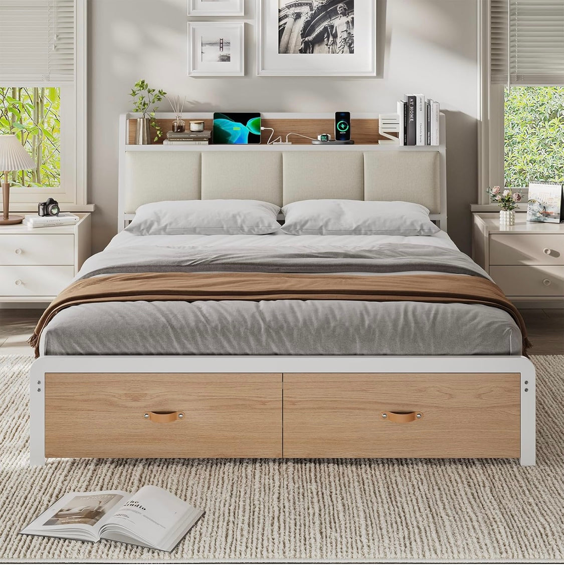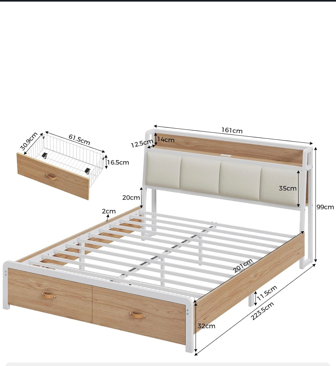 - Tête de Lit avec Rangement et Multiprise : Ce lit 160x200 avec sommier est doté d'une multiprise, (y compris 3 ports USB et 1 port Type-C), facilitant le chargement de vos portables, iPad et autres appareils électroniques en vous assoyant sur ces lits et cadre de lit pour adulte. Les étagères ouvertes et 2 compartiments latéraux seront idéaux pour accueillir vos portables, réveil, magazines et autres essentiels