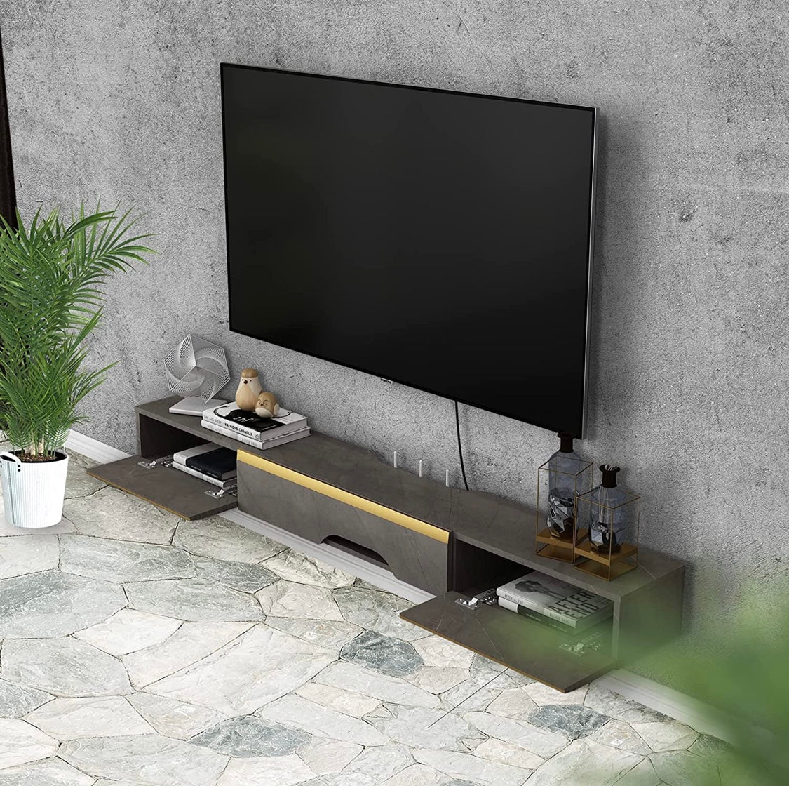- [Économies d'espace et grande capacité] Console TV murale, 1 porte 2 armoires, grand espace de rangement permet de libérer de la place pour les boîtes de câble, décodeurs, CD, DVD, consoles de jeux, projecteurs, composants TV, bijoux, objets de collection, photos ou bibelots.